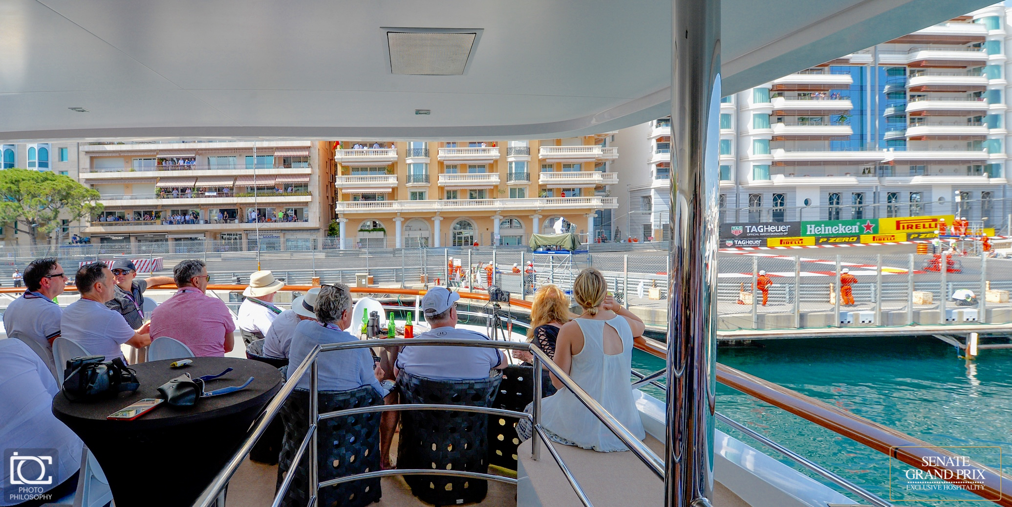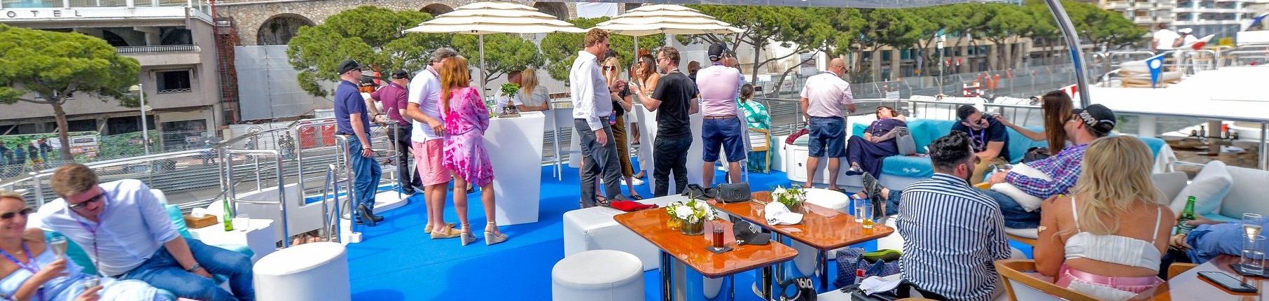 Oplev Monaco Grand Prix™ fra vores eksklusive Zone A tri-dækkede yacht Få enestående udsigt til racet, når bilerne suser gennem den ikoniske havnesektion – en af banens mest spændingsfyldte strækninger. Vores nøje udvalgte yacht tilbyder optimale betingelser for at nyde løbet i luksuriøse omgivelser. Gæster ankommer med VIP-tender fra Port Hercule og bydes velkommen ombord med champagne, mens Formel 1®-actionen udspiller sig få meter væk. Store skærme både i havnen og ombord sikrer, at du følger med i hvert sekund. Hotel de Paris’ officielle caterer samarbejder med yachtens kok om en dag fyldt med kulinariske oplevelser – fra morgenmad til frokost med live cooking stations og åben bar med champagne, vine og spiritus. En DJ sørger for stemningen hele dagen.